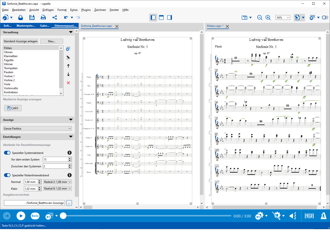 Mit wenigen Schritten werden alle Auszüge einer Partitur auf einmal erzeugt. Und sie werden auch noch automatisch nach Wunsch formatiert!